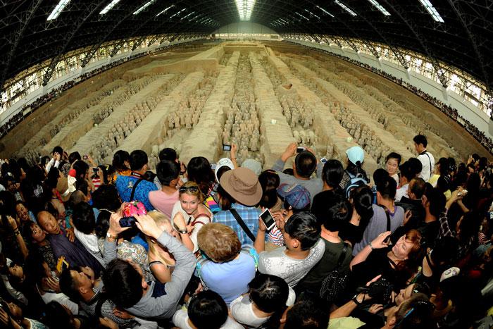 Como el Museo del Ejército de Terracota es una de las atracciones que hay que visitar en China, está abarrotado la mayor parte del tiempo, especialmente durante los fines de semana y días festivos chinos, como el Día Nacional (1–7 de octubre) y el Día del Trabajo (1º de mayo - 3)