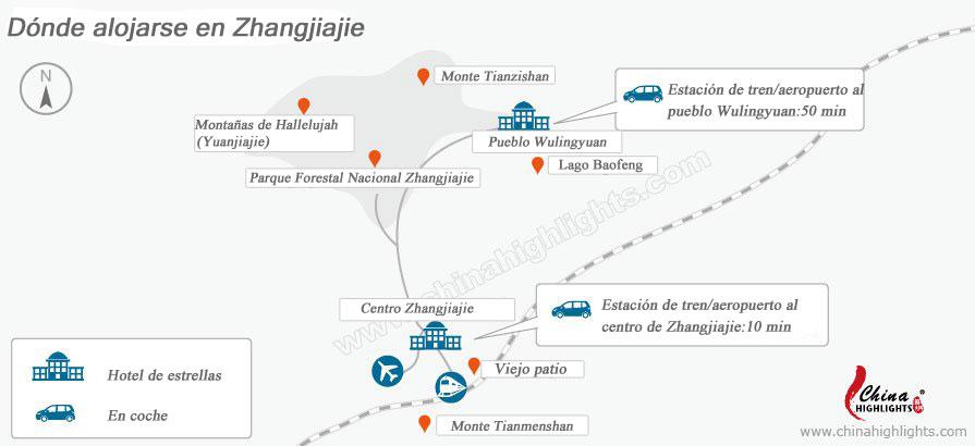 Los hoteles en la ciudad de Zhangjiajie son buenos para los turistas que llegan a Zhangjiajie la primera noche, o que han terminado su viaje y van a tomar un vuelo o tren a la mañana siguiente, o que solo desean visitar los lugares de interés de la ciudad de Zhangjiajie, como la montaña de Tianmen.