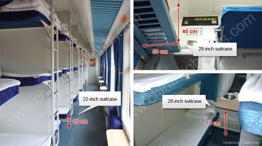 Portaequipajes encima de los asientos: Después de abordar en el tren, puede colocar su equipaje en el maletero por encima de los asientos. Es razonable colocarlo en el estante de equipaje que está frente a su asiento, para que usted pueda mantener un ojo en sus maletas