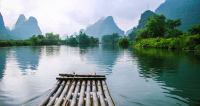 Un crucero por el río Li desde la ciudad de Guilin hasta Yangshuo es tan popular como un crucero por el río Yangtze. El río Li parece una cinta de seda verde entre las montañas, las ciudades antiguas y las aldeas populares. Después de llegar a Yangshuo puedes apreciar el paisaje del campo en bicicleta. Si deseas acercarte al agua, el bote de bambú en el río Yulong es muy recomendable.