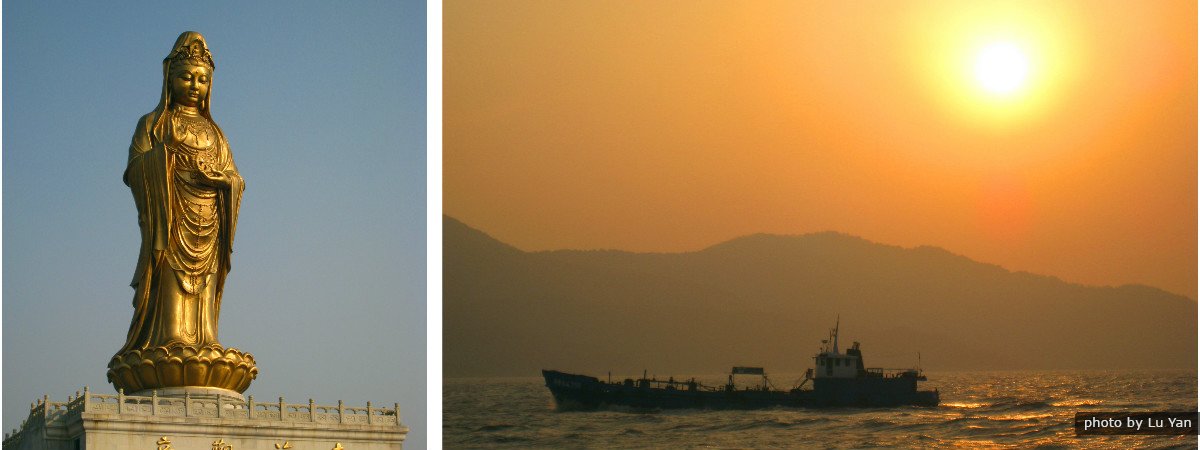 Hay unas fantásticas vistas de los marinos circundantes desde Monte Putuo. Es el hogar del famoso templo de Guanyin (Bodhisattva) en toda China, y una estatua de Guanyin de 33 metros de altura. Tiene muchas playas entre ellos el Hundred Step Beach y Thousand Step Beach son los dos más importantes con servicios como tumbonas, sombrillas y actividades acuáticas.