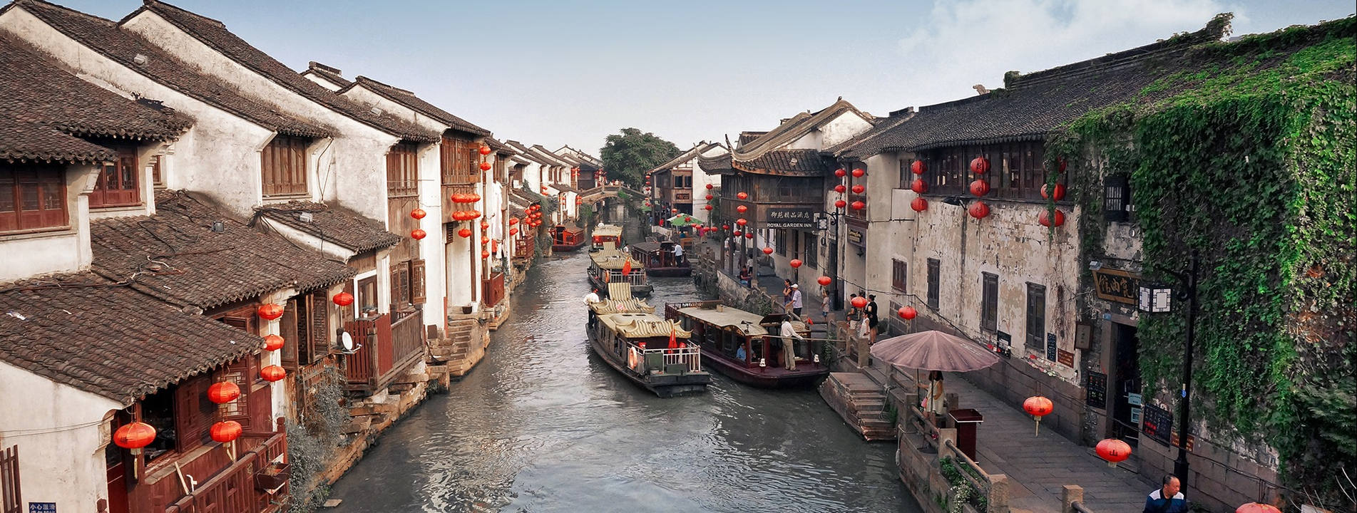 Los pueblos de agua son pueblos antiguos e históricos conocidos por sus puentes, ríos y canales . Estos pueblos existen en muchas regiones de China, el pueblo de agua Zhujiajiao de Shanghai, y los de las provincias de Jiangsu (Tongli, Zhouzhuang) y Zhejiang (Nanxun, Wuzhen) suelen ser las más famosas.